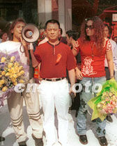 台湾歌手齐泰、迪克·牛仔等,将于五月十二日在广州举行一场音乐创世纪大型演唱会。图为齐泰、迪克牛仔十一日抵穗与广州歌迷见面。中新社图 刘卫勇 摄