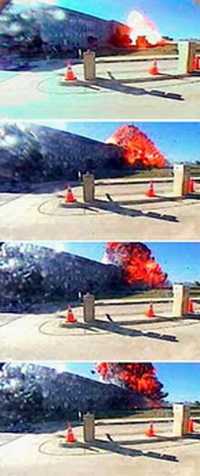 组图:美国媒体公布飞机撞击五角大楼瞬间照片 2002年03月08日 09:43 ![]() 五角大楼北面的监视镜头拍摄的撞击场面 中新网北京3月8日消息:美国传媒公开一组去年“九·一一”恐怖袭击事件中,国防部所在的五角大楼遭被劫持客机撞击瞬间的照片。 据美联社报道,这组照片共有五幅,是由悬挂在五角大楼北面的一个监视镜头拍摄的。从照片中看,五角大楼北侧遭飞机撞击时,从地面腾起一团火焰,并冒出滚滚浓烟。