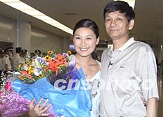 ![]() 刚刚在波多黎各首府举行的“2002环球小姐”比赛中荣获季军的19岁上海姑娘卓灵,十一日载誉回到北京,她的父亲卓祥秉专程从上海赶赴北京首都机场,迎接女儿回家。 作者:章永哲