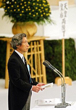 已于今年四月二十一日参拜过的日本首相小泉纯一郎今天没有参拜靖国神社,而是到千鸟渊战死者墓苑献花。小泉在今天上午日本政府举行的全国战没者追悼仪式上致词时表示,日本要坚守“不再战”的誓言,为国际社会的永久和平作努力。他同时承认日本曾对亚洲各国人民造成了巨大的伤害和痛苦,表示“深切的反省”和“哀悼之意”。