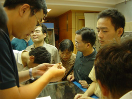 此人向记者透露,自己是昨天特意从北京赶来参加此次拍卖会的并自称是周怀民的亲戚。他认为以周怀民在北方的名气,这样的价格很合理,“就是这样的价格,我看上升空间也很大”。他踌躇满志的表示,这次拍卖会上书画的作者在北方都相当有知名度,这次来还想多拍几件字画回去。另一副冯大中作老虎写意图起拍价为二千一百元,一路攀升后以高于起拍价近十倍价格即二万二千元被一位竞拍者买走,引起现场一片哗然。随后该竞拍者便离开了拍卖会场。