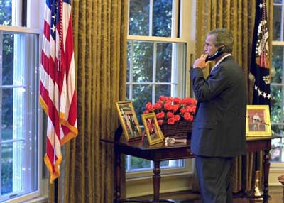 中新网北京9月6日消息:据法新社发自白宫的消息,美国总统乔治-布什今天打电话给中国、俄罗斯和法国的领导人,就伊拉克问题进行了商谈。