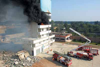 据新华网报道,今天这次演习是模拟超高层建筑受到恐怖袭击爆炸起火,借此检验公安消防部队跨区域应急救援预案的落实情况和应用新技术装备的实战水平,提高跨区域反恐应急救援能力。现场演练包括高层建筑灭火救生、建筑物倒塌情况下的搜救等项目,另外还模拟了遭遇毒气袭击时的紧急处置。救援队员使用了A类泡沫车、破拆高喷车、消防机器人、蛇眼生命探测仪等先进设备。(邱红杰)