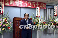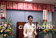 留日华侨联合总会会长陈(火旁加昆)旺、日本侨报总编辑段跃中分别代表日本华侨华人和在日华文媒体致词,对中国新闻社成立五十周年表示祝贺,称赞中国新闻社为海外华侨华人了解中国发挥了重要作用。