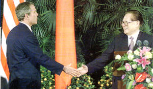 4月27日,中国国家副主席胡锦涛的美国之行,被舆论认为是中国在9·11之后积极出击,主动寻求新策的一种举动。这也是一年来,中美关系的一个高潮。