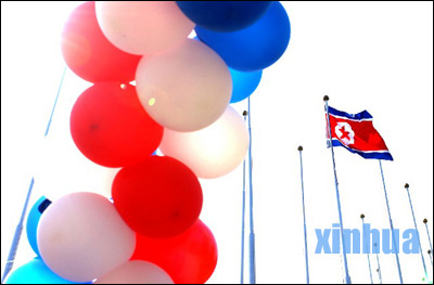 中新网9月24日电:韩国亚运筹委会24日在亚运村为朝鲜代表团举行升旗仪式,朝鲜国歌随着缓缓上升的国旗首次在韩国播出。