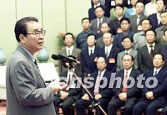 全国人大常委会委员长李鹏二十六日在北京会见人大信访工作座谈会的与会人员。满会乔 摄