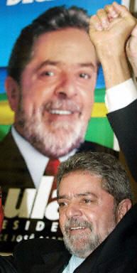 10月7日,巴西总统候选人卢拉在圣保罗一家旅馆举行的新闻发布会上庆贺自己在总统大选的第一轮选举中获胜。