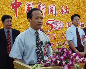 中新社总编辑郭招金在庆典上致辞。他说,中新社是中国两家通讯社之一,成立于一九五二年九月十四日,主要为港澳同胞、台湾同胞、华人华侨服务。目前,中新社在中国内地的二十五个省、自治区、直辖市设有五十六个分社、支社、记者站。在香港、澳门特别行政区,在美国、澳大利亚、日本、法国、泰国建有分支机构。现在中新社每天播发新闻电讯稿一百余条,传真图片三十多张,中国新闻网每天更新新闻四五百条,中国新闻图片网每天更新新闻图片一百多幅,向海外几十家报纸提供专稿和制作十七个报纸版面。