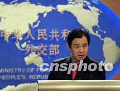 中国外交部发言人孔泉五日在外交部新闻发布会上就中共十六大的召开等问题答中外记者问。作者:满会乔