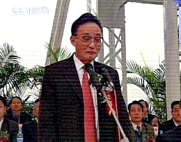 国务院副总理吴邦国宣布导流明渠截流合龙成功后,全国人大委员长李鹏发表了重要讲话。