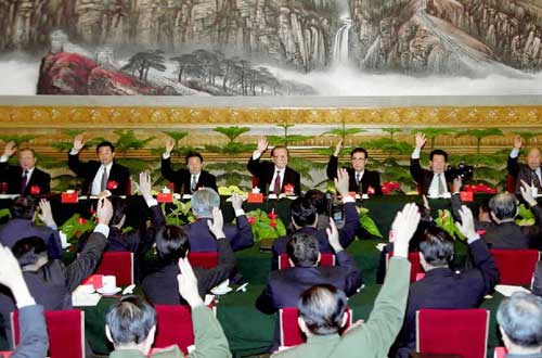 会议以举手表决的方式,通过了经各代表团差额预选产生的中央委员会委员、中央委员会候补委员、中央纪律检查委员会委员候选人名单,提请各代表团再次酝酿。