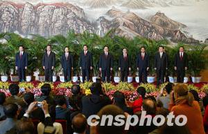 中新社北京十一月十五日电 题:新一届中共中央政治局常委首次亮相