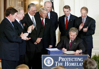 中新网11月25日电 美国总统布什周一签署了国会通过的国土安全部法令﹐正式展开半世纪以来最大规模的政府重组计划。
