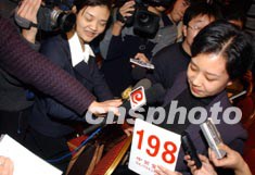 图为中标者竞标成功后接受媒体采访。