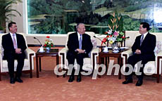 中新社北京十二月十一日电(记者 黄少华)国家副主席胡锦涛今天下午在人民大会堂福建厅会见了香港特别行政区行政长官董建华和澳门特别行政区行政长官何厚铧。