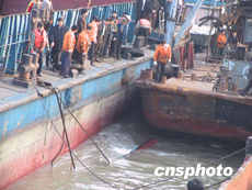 中新网12月22日电(记者 邹辉)记者从现场发回最新消息称,重庆长寿“12.18”撞船事故沉船打捞工作仍在进行,截止下午四点五十六分,沉船只有船头露出水面。