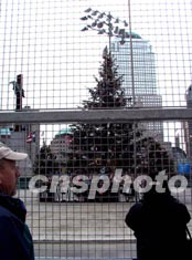 圣诞之际,美国在纽约世贸废墟上矗立起高大的圣诞树,寄托对二千多个无辜生命的悼念之情。作者:赵海燕