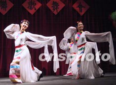 渥太华中国大专校友会等八家华人社团二十八日晚举行庆祝新年联欢会。图为当地华人自编自演的西藏舞蹈《净土》。作者:蒲力