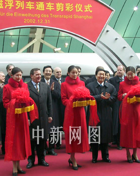中新网12月31日电中国国务院总理朱镕基和正在中国访问的德国总理施罗德,今天上午10时为上海磁浮列车示范运营线试运行通车剪彩,并一同乘坐磁浮列车体会其运行。 剪彩仪式在示范运营线的始发站——龙阳路站举行。之后,朱镕基与施罗德两位总理同乘磁浮列车前往示范运营线的终点站——上海浦东国际机场。 朱镕基29日在与施罗德举行会晤时表示,上海磁浮列车的建设成功是中德经贸关系史上值得祝贺的一件大事。 作为世界上第一条商业化磁浮运营示范线,上海磁悬浮线总投资约89亿元人民币。它亦是新世纪上海交通建设的重点项目。 上海磁浮列车运行要求每小时约450公里,它既是连接机场和市区的大运量高速交通线,也是一条旅游观光线。 近期,上海高速磁浮列车单列为三节车厢,一共有座位200个左右。据悉,到2003年9月全线开通时,上海磁浮列车将实行双线折返运行;2003年底全线完成考核验收。届时,每隔10分钟就可发一趟车,每列列车有望增加到5节。 |