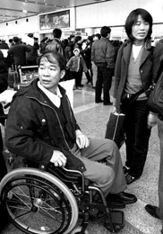 昨天下午5点40分。首都国际机场国际到港出口处。在推着大包小包行李的人流中,一个头发稀疏的中年男子坐在轮椅上被缓缓推出。他就是在2002年4月12日以色列耶路撒冷爆炸案中受伤的中国劳工林金谋。