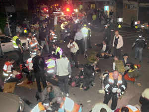 以色列当地时间5日晚,特拉维夫老中心汽车站发生两起自杀性爆炸袭击事件,已导致24人丧生,70余人受伤,其中10人伤势严重。