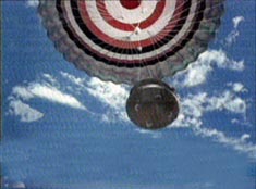 屏幕上数据显示,飞船顺从地转换角度,完成了第一次姿态调整。时间在一秒一秒延续,一条条准确无误的指令相继发出。飞船轨道舱与返回舱分离,返回舱再次转换角度。随后,制动发动机点火成功,“神舟”四号开始降低飞行速度。