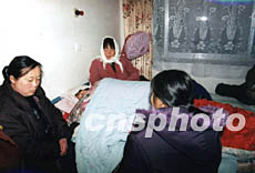 中国山东潍坊昌大集团建筑工人李培中一月五日在以色列特拉维夫自杀事件中遇难,李培中的妻子听到噩耗后悲痛欲绝病倒在床上,亲友们整日守在她身边劝慰。作者:徐玉汉