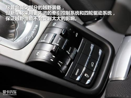 新卡宴的轴距在老款的基础上会有一定的加长,但车重却要减轻了170kg左右,这将有助于将入门级V6车型的整备质量降低至大约2000kg。 重量减轻可能要部分归功于新款卡宴车身外壳中铝材料的扩大运用,例如车门等面板。除此之外,保时捷还削减了新款卡宴的机械部件,舍弃了该车的许多标准越野装备。