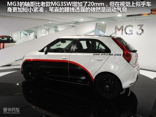 MG3的车身尺寸分别为长/宽/高3999mm/1728mm/1517mm,轴距为2520mm,比上一代车型增加了20mm。整车看起来小巧精悍,同时非常饱满,犀利的运动风格是最为明显的基调,无论是前脸的“大嘴”设计,还是侧面笔直的腰线,都显示出MG3的目标受众为喜爱运动的年轻人群。