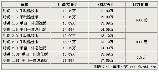 据4S店销售人员介绍:目前明锐全系最高优惠1万元。1.6升车型优惠6000元,2.0升车型优惠8000元,1.8TSI的两款车型优惠1万元。虽然优惠幅度较之前有所增加,但目前依然没有现车,订车最短需等一个半月,最长需等3个月。不过,某些店内有很少量现车,但优惠幅度较小,所以建议不着急用车的朋友预定车辆可获得更高的优惠。