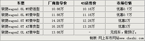 骏捷wagon目前上市已经有很长时间了,这款车在春节前的优惠比较高,但近期的价格明显有所提升。如果不是买断销售,骏捷wagon 1.8T车型很难有2万元以上的优惠幅度。但是,销售情况比较好的骏捷wagon 1.8L车型,在价格优惠方面却并没有太多增进。