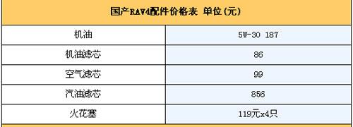 4.保养费:RAV4的首保为5000公里,保养间隔为5000公里,首保免费,质保期为2年4万公里。据了解RAV4每5000公里要经历一次小保养,包括工时费在内费用大概为375元,2万公里的大保养在1000元左右,这样算来6万公里RAV4的总费用在5500元左右.平均每年2万公里保养费用在1833元左右。