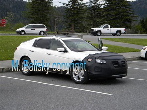 从谍照上看,雅阁Crosstour的车顶线条与在本届纽约车展上亮相的讴歌ZDX概念车非常相似,车顶摆脱了传统的“两柱式”设计,A柱与C柱被视觉冲击感极重的一体式“溜背”车顶设计所取代。虽然此设计创新力极佳,但是后尾急降的弧度不知道会不会另后排乘客感觉到头部空间不够。