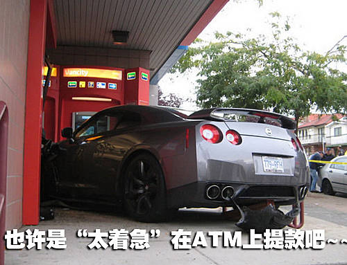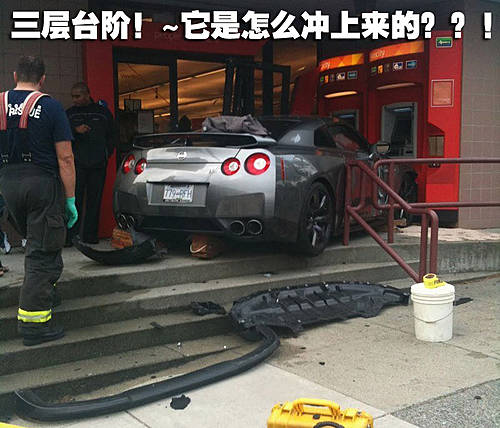 这辆售价在100余万元左右的全新GTR跑车在海外发生一个令人匪夷所思的车祸,一位鲁莽的驾驶员开车车闯入了温哥华银行!乍一看您一定会以为这是某部美式大片的拍摄现场,而现实则不然,万幸的是驾驶者并未因此而遭受严重伤害。