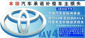 除了赔偿外,一汽丰田还表示,在4月底前完成浙江所有RAV4问题汽车的召回维修工作,并保证维修质量;对尚未召回的RAV4汽车,可根据消费者的需求提供上门召回服务;在召回维修阶段影响车主使用的,由经销店提供代步车供消费者使用。这些服务都与丰田在美国提供的一致。不过中国车主之前一直未能享受如此贴心的服务,甚至日后除了浙江的车主有机会享受外,其他地方的车主还是没有这个待遇。因为记者致电一汽丰田客户服务中心了解到,类似上门召回的服务,暂时只限于浙江,其他地方的车主,现在依然需要自行前往4S店维修。据一汽丰田广州区域相关负责人表示,目前广州地区已实现9成以上车主回店检测。
