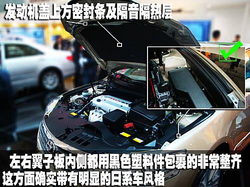 广丰凯美瑞可以说是日系B级轿车中的代表作,其发动机舱内布局不仅工整而且在前格栅上方以及两侧翼子板这些空隙的地方都用塑料件覆盖,提升了发动机舱的整齐程度看上去非常严谨和美观。