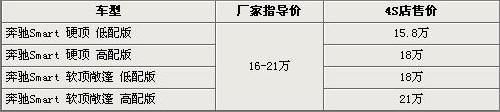 继奔驰Smart Fortwo于08年北京车展首次与国内消费者见面后,奔驰Smart将于本月8日正式上市。奔驰Smart首推四款车型,分别为两款硬顶版和两款软顶敞篷版车型,其中奔驰Smart硬顶低配版入门车型的售价为15.8万元。在动力方面,奔驰Smart将搭载1.0L汽油发动机,并且采用后轮驱动。