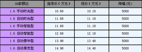 近日,记者从北京地区的经销商处了解到,东风日产08款新颐达节前保持着5000元左右的现金优惠,比起元旦前一万元以上的优惠,如今买车显得不够划算,不过08款颐达较之老款有了一定的升级,价格上涨也属合理。