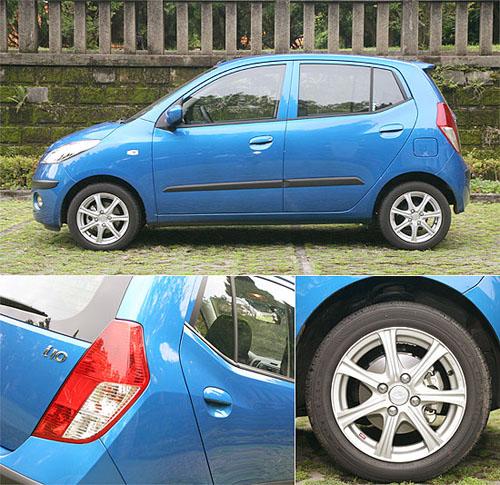 虽然为了争取较宽敞的车室空间,i10采用了高车身的设计,但在车侧腰线特意提高,加上侧窗上扬收尾的线条,让人不容易察觉i10高人一等的车身,在后车门把位置,原厂也在钣件上加入一道折线,让视觉效果更为丰富,而此次所试驾的顶级车型,则换上加装的14吋铝圈,增添运动气息。