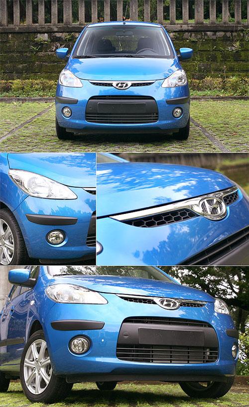 从车头开始,i10便以锐利的头灯造型,搭配精致的圆形雾灯,展现了年轻活泼的视觉效果,而在水箱护罩部分的设计,i10则与Lavita有着异曲同工的手法,但在上缘及椭圆形厂徽四周增添了镀铬妆点,视觉效果更为突出,下方气坝虽然为如同Lavita呈现类似微笑般嘴型的设计,但仍不减i10的可爱指数。
