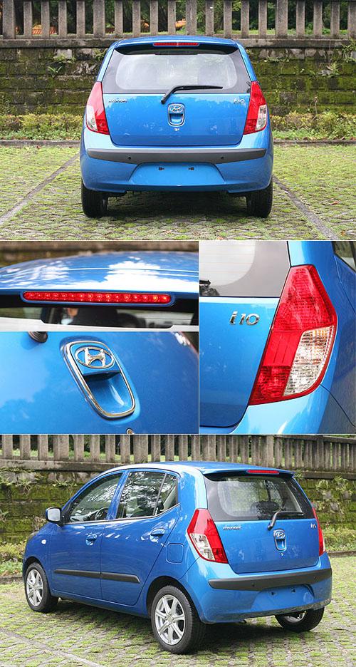 车尾造型部分,配合i10的高车身设定,因此原厂采用直立尾灯样式,多边造形搭配红白配色,在视觉效果上展现新意,虽然尾灯并无LED照明技术,但将其运用在尾翼上的第三刹车灯,仍然能够带给后方来车清楚的辨识效果,而在后行李箱把手部分,i10则结合了厂徽与镀铬边框妆点,在A级距产品中算是难得的精致设计,使用上也颇为就手。