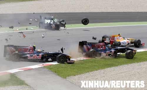 F1西班牙站:四赛车连环撞 碎片及轮胎"满天飞"(2)——中新网