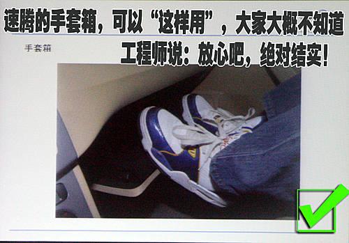 一汽大众产品部工程师在演示这张照片的时候令在场媒体记者很吃惊,扶手箱打开后竟然可以当作副驾驶乘员的歇脚板。而且一汽大众产品部工程师还告诉我们,“尽管放心的去用吧,它足够结实!”。
