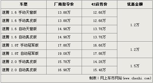 据经销商销售人员介绍,速腾1.6L和1.8T冠军版车型均优惠1.2万元,而2.0L车型优惠1.5元达到了全系的最高。1.6L排量车型经优惠1.2万元后,入门级的手动天窗版售价降为了12.68万元,为全系最低价。经优惠后1.8T的手动型与自动型售价分别降到了16.68万元和17.88万元。高排量的2.0L车型经优惠1.5万元,手动型和自动型售价分别为14.28万元及15.48万元。销售人员还介绍,店内1.6L车型现车较充足,消费者挑选的空间大。