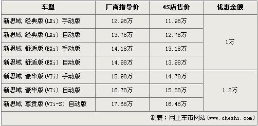 据东风本田经销店销售人员介绍,目前新思域全系最高优惠1.2万元。新思域分为经典版、舒适版、豪华版及尊贵版4种共7款车型。经典版和舒适版车型有1万元的优惠,经优惠后入门级的经典手动版售价从原厂商指导价12.98万元降到了11.98万元。豪华版和尊贵版车型优惠1.2万元,经优惠后全系最高配的尊贵版车型跌破了17万元,售价降到了16.48万元。销售人员还介绍,目前全系手动版现车紧张,错过店内现车的消费者需交订金1千元,本月月中可提车。