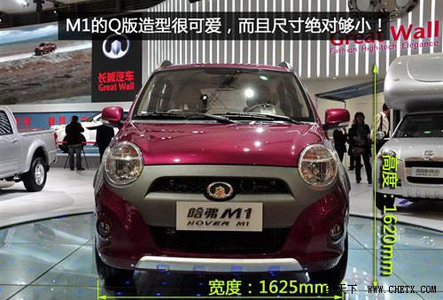 哈弗M1外观设计可爱不失动感,尺寸上长、宽、高分别为3569mm、1611mm与 1595mm。配备了运动型侧裙包围、行李架和五幅运动型轮毂,运动感十足。令人惊讶的是,尽管尺寸很袖珍,但长城还是为M1准备了适时四轮驱动系统,让其具有了一定的越野性能。