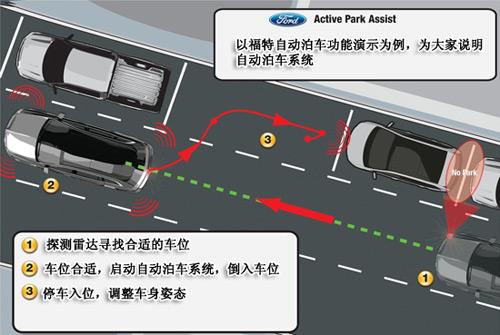 自动泊车系统其实原理很简单,就是通过电子技术自动操控汽车作出司机的停车动作,这时候司机可以完全松开双手,仅仅靠刹车控制一下车速就可以了。自动泊车系统主要由控制电脑、探测雷达组成,首先由探测雷达扫描街边的停车位,当扫描到停车位后,提示司机是否停车,如果停车,司机只需按下自动泊车启动键,然后控制电脑通过接收探测雷达的信号,按部就班地执行事先输入到电脑里的程序,自动操控车辆执行停车入位的动作,直到停好车为止。大家可以通过下面的示意图,了解这一过程。