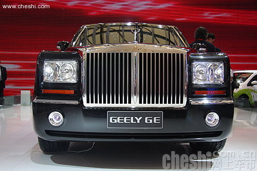 据介绍,吉利GE的车长在5.3米左右,轴距3.1米左右。我们从外形上可以看出,它与劳斯莱斯幻影有着非常相似的造型,叫小劳斯莱斯这个名字也就不奇怪了!吉利GE的前脸与劳斯莱斯幻影惊人的相似,超大直瀑式镀铬,方形的前大灯,圆形雾灯都与幻影如出一辙,前车标也是直立于机盖,并且同样是挥动的翅膀,当然不是天使造型了。