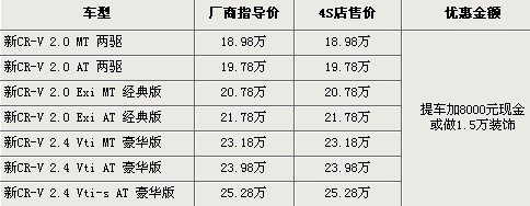 本田CR-V-—提车加现金8000元或加1.5万元装饰